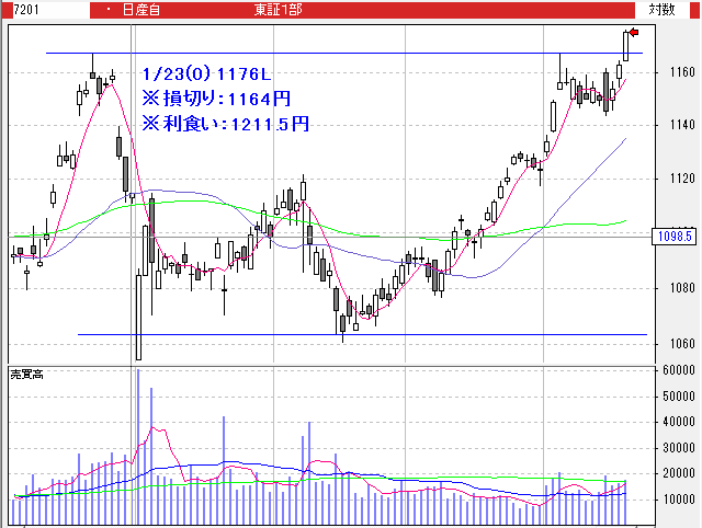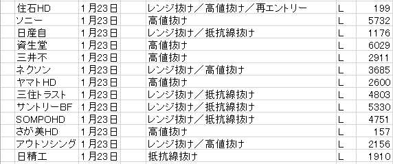 ※保有銘柄が5つで、この2つにエントリーすると最大保有銘柄数を超えてしまいます。これは非常に珍しいケースですが、この場合は、どちらかのエントリーをスルーすることにします。代金2位の日産自をスルーすることにします。このようなルールに書いてないケースが起こった場合は、その都度ルールに追記しておくといいです(追記しました)。