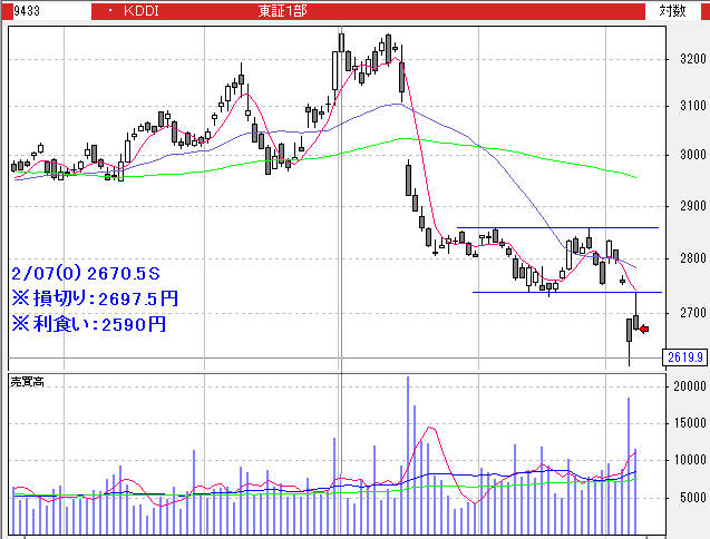 KDDI:2649S→2694.5LC(-1.72%)