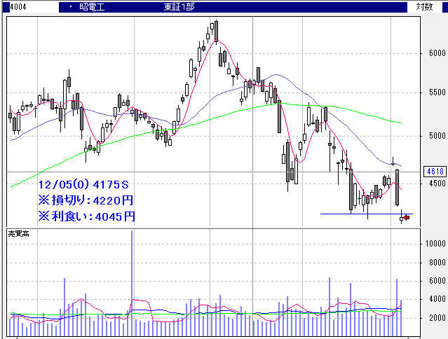 昭和電工:4175S→4220LC(-1.08%)