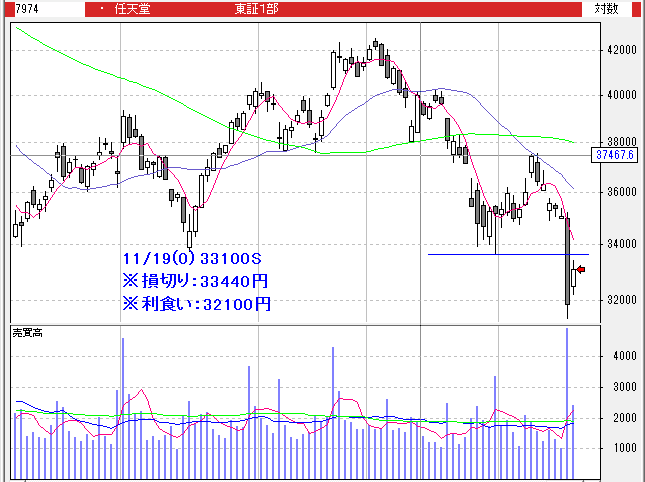※日経平均は続落。任天堂や黒鉛電極関連銘柄が暴落した。日経平均もグラグラしてるが、個別で見ても雲行きが怪しくなってきた感じ。