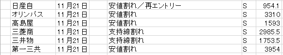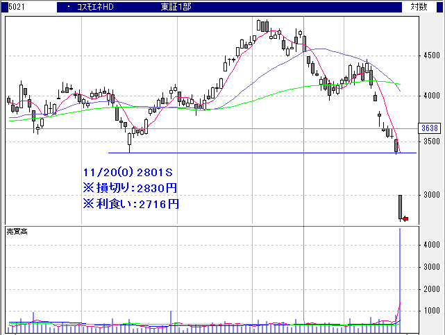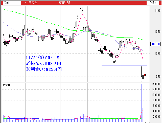 ※日産自動車について。ゴーン会長が逮捕されたとはいえ、上場廃止になるようなリスクはまずないと考えられるため、今日程度の下落に過ぎない。ストップ安になるのでは?という記事も出ていたようだが、直接的に業績には影響がないわけで、さすがにあり得ないと思った。今日の下落で配当率は5.99%に。減配になるようなことがない限りは大きく下げることはないと考えられる。が、さすがにいつ減配になってもおかしくない水準でないかとも思う。減配になったらどうなることか……。青山が減配で17%下げたから、今日の2倍位は下げてもおかしくないんじゃないか?