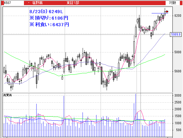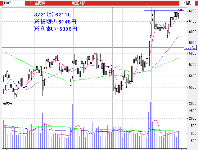 塩野義:6249L→6192LC(-0.91%)