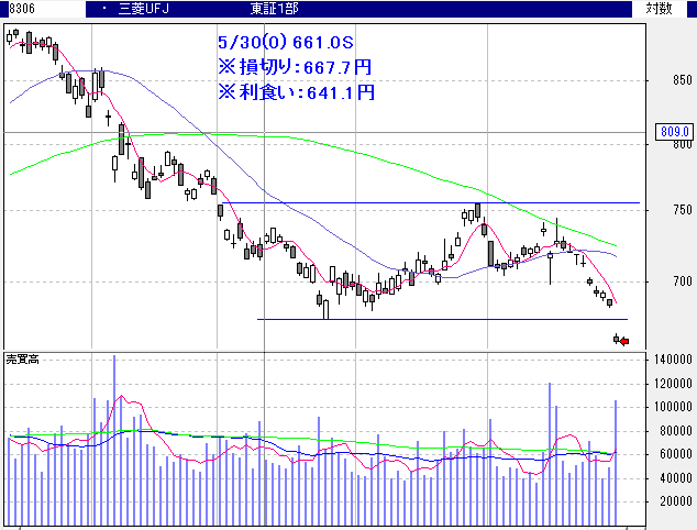 三菱UFJ:661.0S→667.7LC(-1.01%)