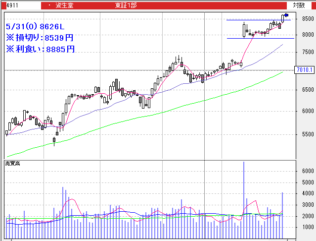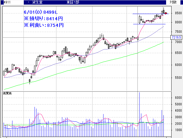 資生堂:8626L→8539LC(-1.01%)