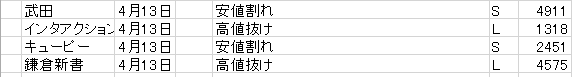 ・その後もこのルールで入り続け、ベクター-1.16%LC、インフォテリア-1.67%、エムアップ+5.00%利食い(嫌な感じがしたため、5%で早めに利食い。その後、保有していたらLCになっていた)(エムアップ以外画像省略)。