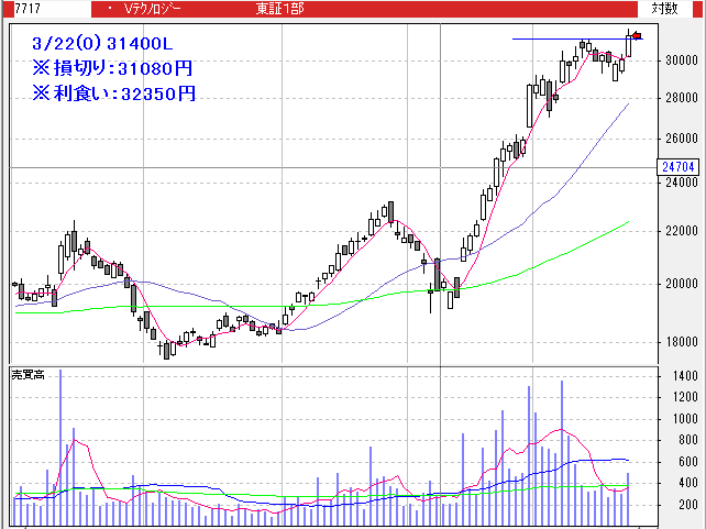 Vテクロノジー:31400L→30700LC(-2.23%)