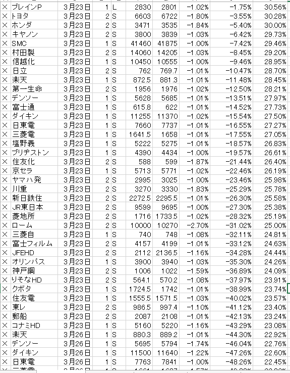 ※これ以外でも、昨日のエントリーは空売りは軒並み踏み上げられて、買いは軒並み下落してと、相場にルールが合ってないですな。