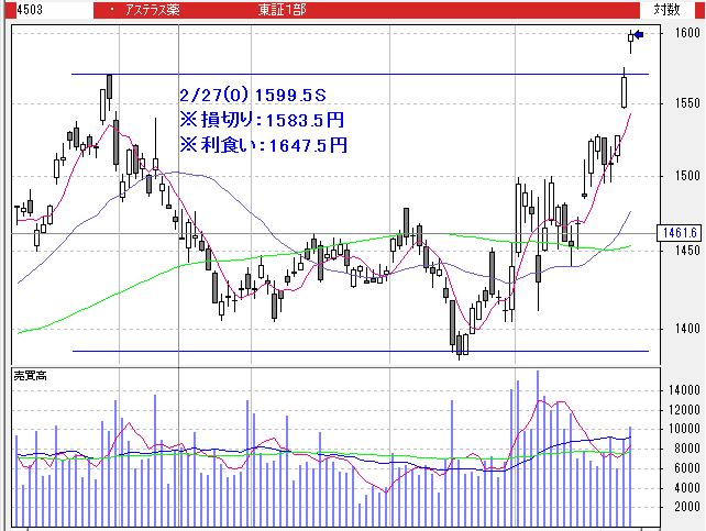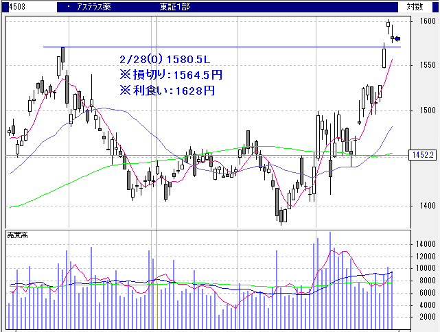 アステラス薬:1580.5S→1549LC(-1.99%)