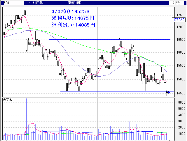 ※日経平均は下落。直近で戻していたからね。日東電が日経平均と全く同じ動きになっている感じ。